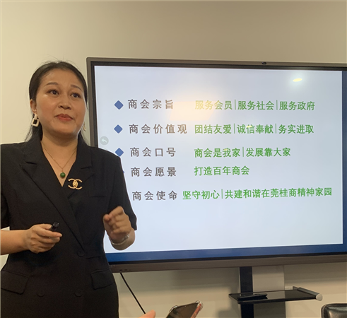 上午,研习交流团到总会理事单位东莞市广西商会参观交流,广西商会秘书长张琳为研习交流团详细介绍了商会发展建设情况。在分享互动环节,张琳秘书长围绕工作提前部署、指标细化研究、科学细化分工等五个方面总结了商会创建5A级社会组织的经验,分享了商会发挥新媒体矩阵优势,创新社会组织发展路径,运用商会独特优势助力稳住经济大盘的特色做法。.jpg)
