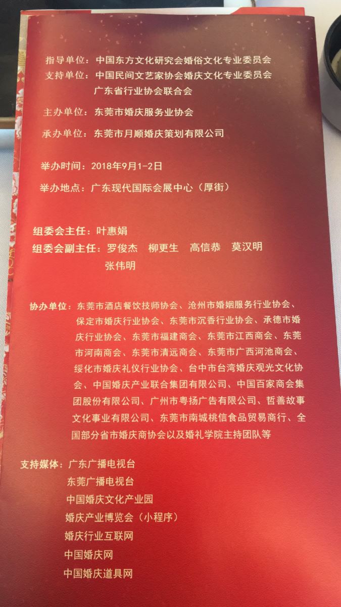 详情: 2018年5月26日中国婚庆文化产业博览会-婚庆市场顾问柳更生先生、东莞市婚庆服务业协会会长叶惠娟女士在虎门的活动会议宣讲解读了中国婚庆文化产业园博览会在广东现代国际会展中心2018年9月1-2日举办及宗旨以及重点为亮点会员单位与全国各地的品牌形象,更好地推广和展示企业现场销售的收益活动,并呼吁现场企业家们积极参与。