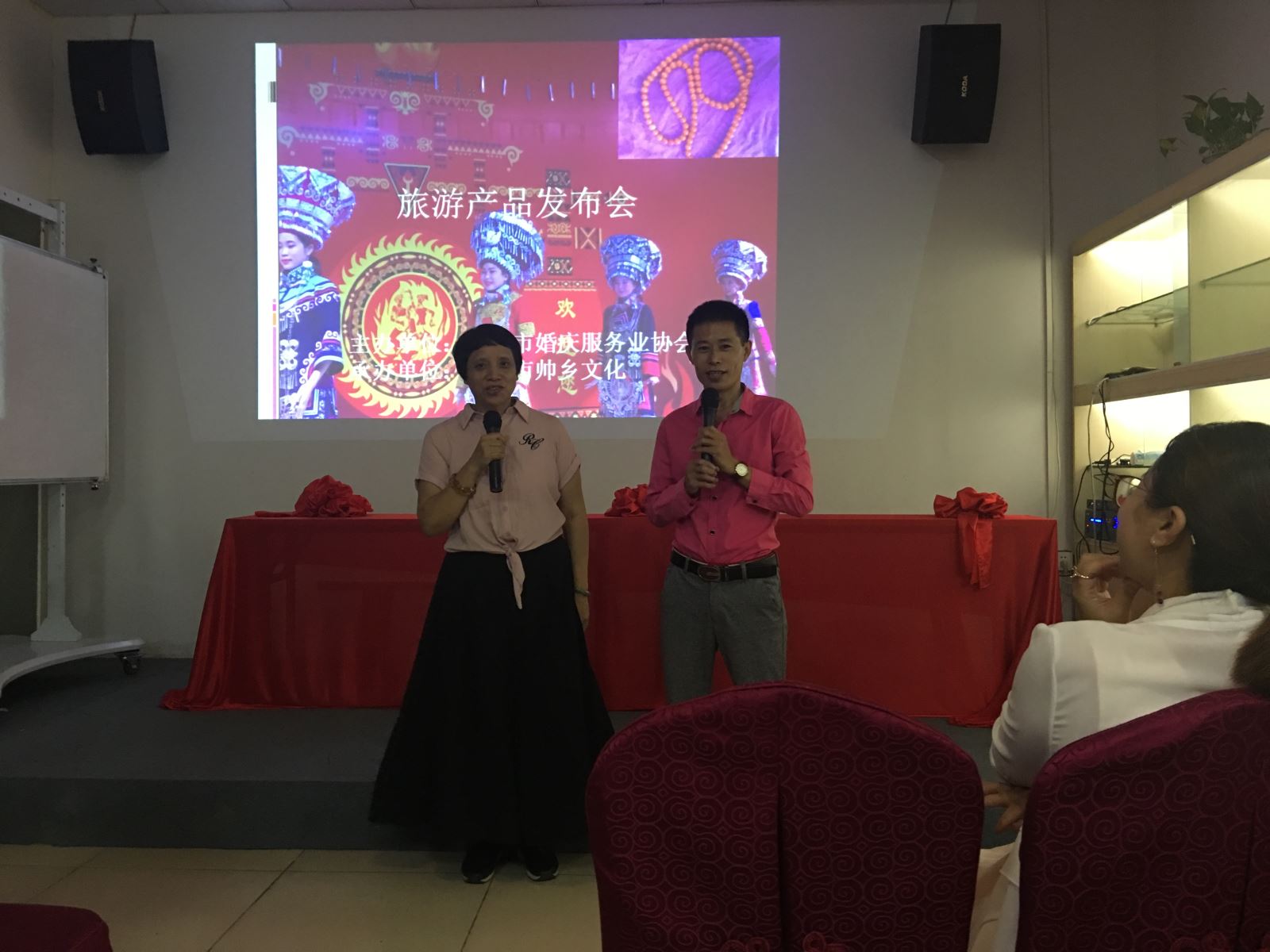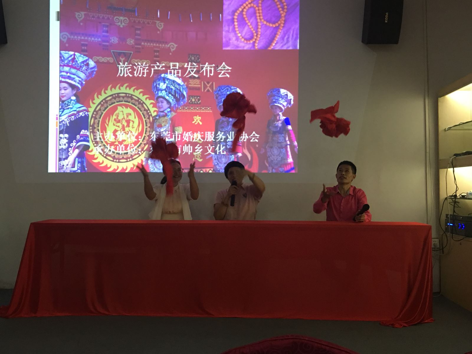 详情: 2018年5月27日在南城区由东莞市婚庆服务业协会会长叶惠娟女士、副会长(东莞市帅乡文化有限公司负责人)龚彬先生主持了本期旅游产品发布会,在会上解读了中国婚庆文化产业园博览会在广东现代国际会展中心9月1-2日举办及宗旨以及重点为亮点会员单位与全国各地的品牌形象,更好地推广和宣传收益活动。