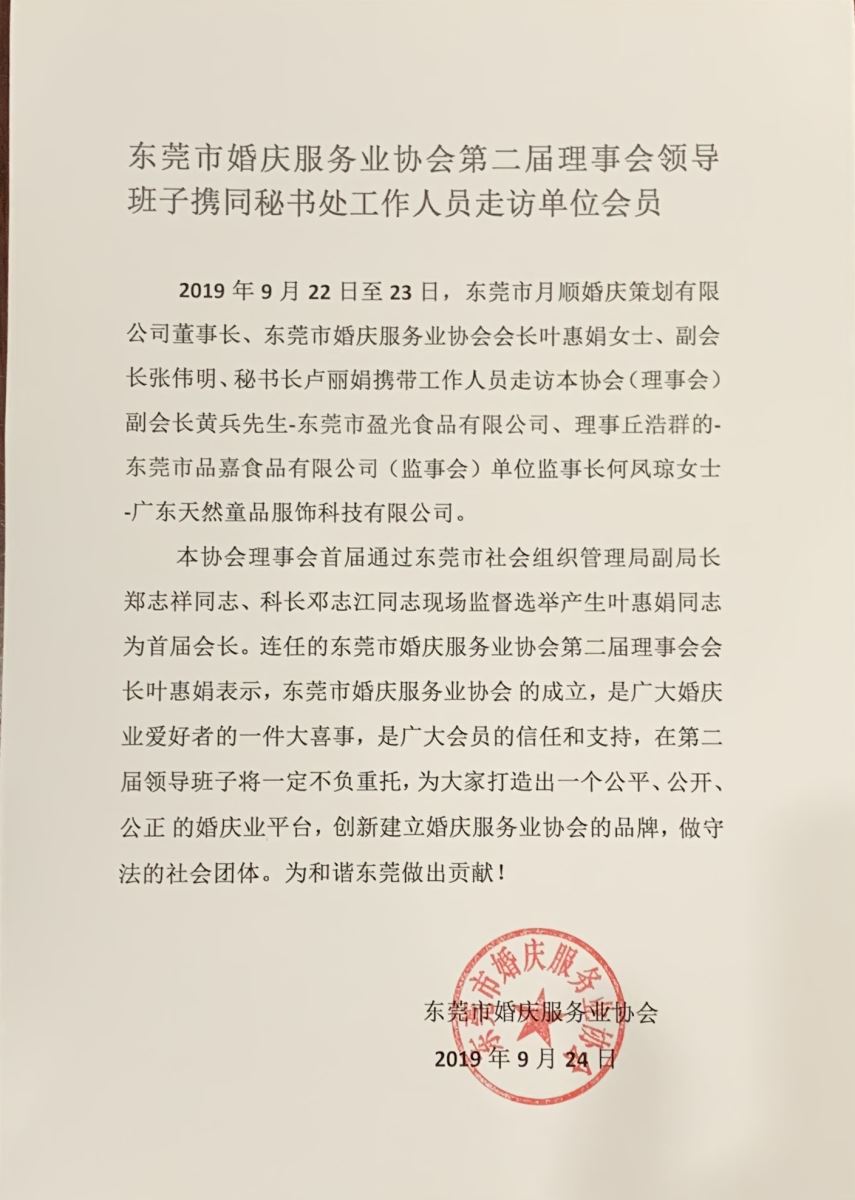 东莞市婚庆服务业协会第二届理事会